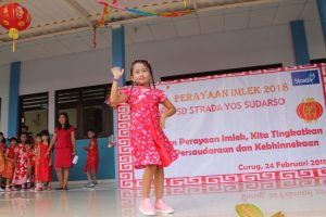 Perayaan Imlek di SD Strada Yos Sudarso, dilaksanakan pada tanggal 24 Februari 2018. Kegiatan dilaksanakan di halaman sekolah, khususnya di panggung pertunjukkan. Kegiatan Perayaan Imlek diketuai oleh Ibu Lisa Ong, dibantu oleh oleh guru-guru yang lain. Acara yang dilakukan antara lain : Ibadat singkat, sejarah Imlek, fashion show, tukar kado, bazar kuliner dan atraksi gerak lagu.