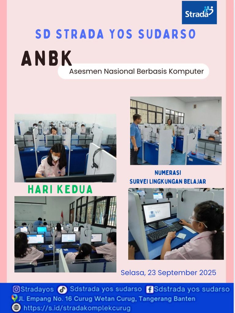 Pelaksanaan Asesmen Nasional Berbasis Komputer (ANBK) untuk kelas 5 SD dilaksanakan selama dua hari, yaitu pada Senin dan Selasa, 22–23 September 2025. Kegiatan berlangsung dengan lancar dan tertib sesuai dengan jadwal yang telah ditentukan.